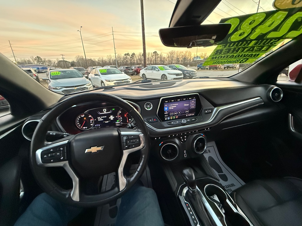 THIS CHEVROLET BLAZER IS A 2 OWNER WITH A CLEAN HISTORY REPORT. IT COMES WITH THE PREMIER AWD PACKAGE AND INCLUDES LEATHER, PREMIUM WHEELS, PANORAMIC SUNROOF, NAVIGATION, POWER SEATS, HEATED FRONT/REAR SEATS, COOLED FRONT SEATS, LANE DEPARTURE, LANE KEEPING ASSIST, ADAPTIVE CRUISE, PREMIUM SOUND, REAR PARKING AID, BLUETOOTH, AND MORE. MANESS MOTORS IS LOCATED AT 1530 N WESLEYAN BLVD IN ROCKY MOUNT. JUST LOOK FOR ALL THE BLUE AND ORANGE FLAGS.