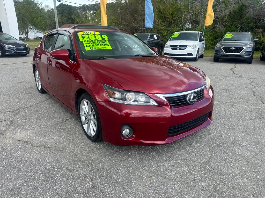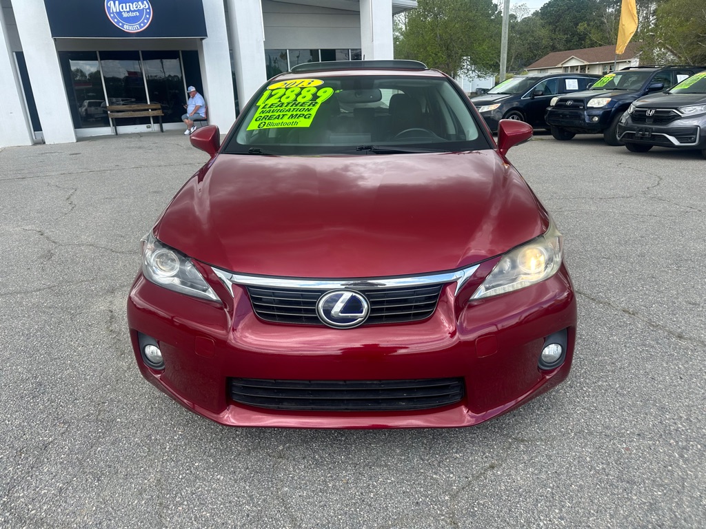 THIS LEXUS CT200H IS A 3 OWNER WITH A MINOR ON THE HISTORY REPORT. IT COMES WITH THE PREMIUM PACKAGE AND INCLUDES LEATHER, HEATED SEATS, NAVIGATION, SUNREOOF, ALLOY WHEELS, BLUETOOTH, AND MORE. MANESS MOTORS IS LOCATED AT 1530N WESLEYAN BLVD IN ROCKY MOUNT. JUST LOOK FOR ALL THE BLUE AND ORANGE FLAGS.