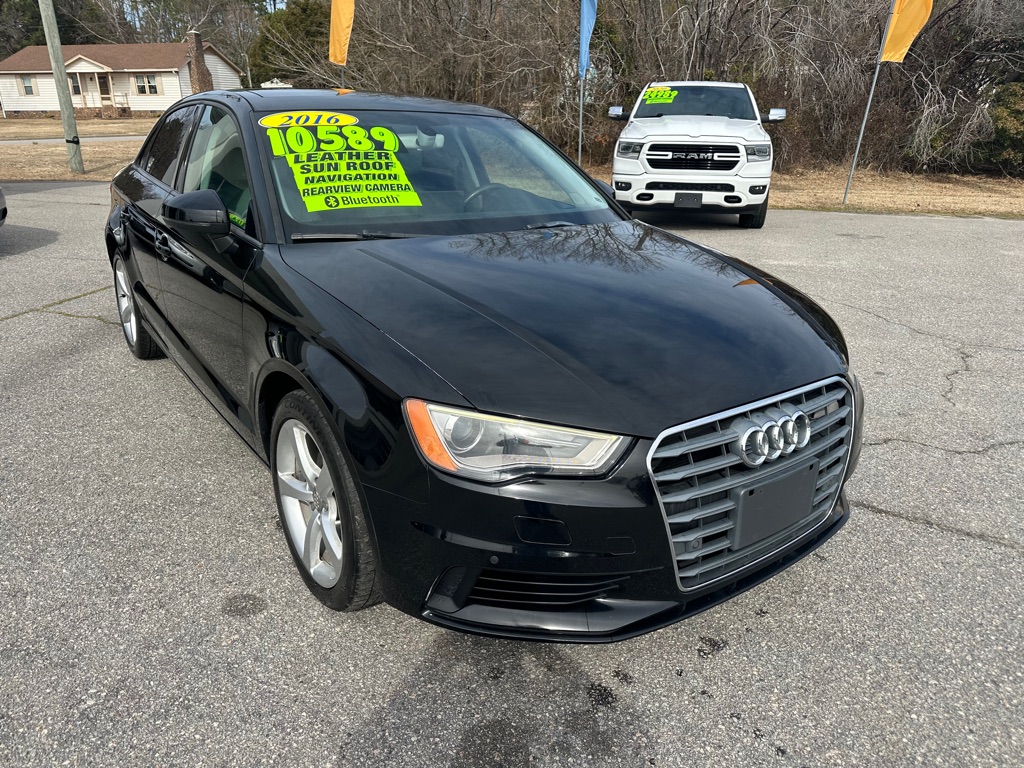 THIS AUDI A3 IS A TWO OWNER WITH A CLEAN HISTORY REPORT. IT COMES WITH THE PREMIUM PACKAGE AND INCLUDES LEATHER, SUNROOF, NAVIGATION, REAR PARKING AID, BACKUP CAMERA, BLIND SPOT, CROSS-TRAFFIC ALERT, HEATED SEATS, POWER SEATS, BLUETOOTH, AND MORE. MANESS MOTORS IS LOCATED AT 1530 N WESLEYAN BLVD IN ROCKY MOUNT. JUST LOOK FOR ALL THE BLUE AND ORANGE FLAGS.